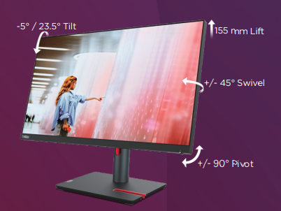 Lenovo ThinkVision P24q-30 monitor professionaalidele, kes hindavad detailset pilti ja täpsust! Lenovo 23.8-tolline QHD ekraan pakub erakordset selgust ja värvitäpsust. Monitori kõrgust ja kallet on lihtne reguleerida, pakkudes suurepärast ergonoomikat pikaajaliseks kasutamiseks.